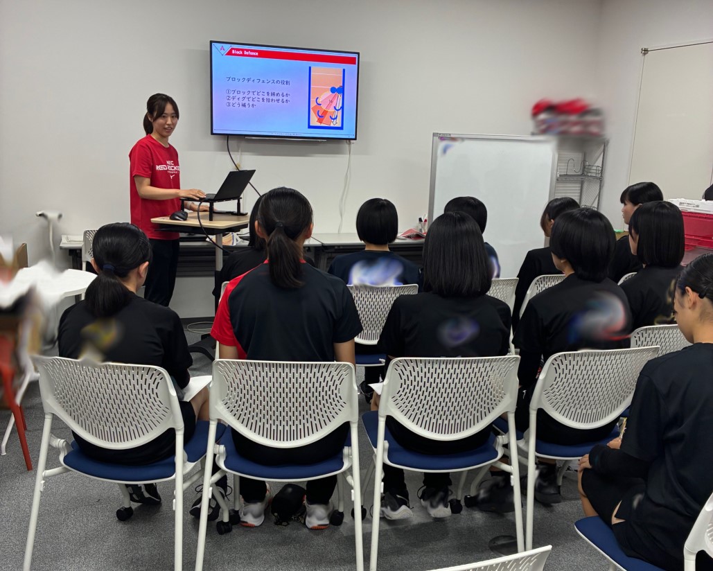 9月の練習前には、トップチームでアナリストをしている下野月葉アナリストにミーティングを開いていただき、【アナリストの仕事について、試合中のデータ活用について、アナリスト目線からのブロック&ディフェンスについて】を選手たちに学んでもらい、バレーボールの知識を身に着ける機会をつくりました。.jpg)