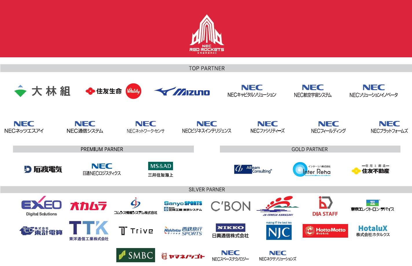 NECレッドロケッツ川崎は、下記企業様と2025-26シーズン パートナーシップ契約を締結いたしましたのでお知らせいたします。バレーボールの魅力発信や普及活動を通して社会貢献にも取り組んでまいります。皆さまとともに“王者奪還”へ向けて今シーズンも駆け抜けてまいります!スポンサー企業様のご紹介今後も引き続きご支援いただくパートナー様を募集しております。概要やお問い合わせなどはこちらご覧ください。