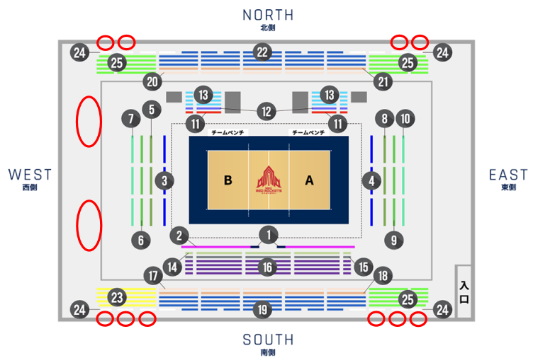 ※立見席エリアは以下図表の赤〇の箇所となります。