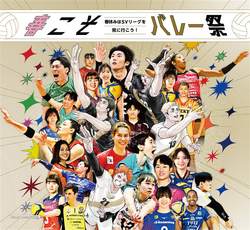 「春こそバレー祭」の1つとして、集英社『ハイキュー!!』(著者・古舘春一)とのスペシャルコラボレーションを実施いたします。“春休みこそバレーを楽しんでほしい”という思いを込めて、初めての試合観戦でも楽しめる取り組みを実施予定ですので、ぜひ春休みはSV.LEAGUEの試合観戦にお越しください。